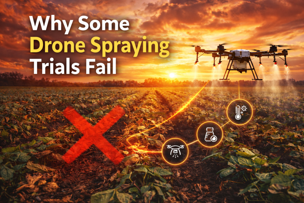 In reality, most unsuccessful trials are not caused by the drone itself. They are usually related to how the spraying system was applied.